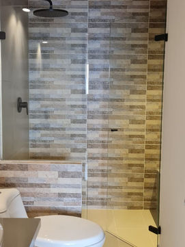 Cabinas de baño: Vidrio templado 6mm con herrajes inoxidables y sellado profesional contra filtraciones.