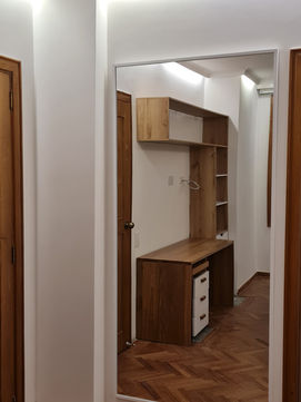 Paredes: Estucado, lijado y pintura en dos capas blanco base. Corrección de imperfecciones menores y acabado.